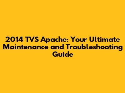 2014 TVS Apache: Comprehensive Guide To Maintenance