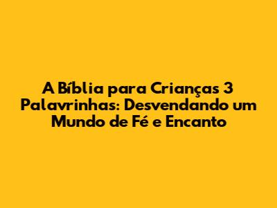 A Bíblia para Crianças 3 Palavrinhas é muito mais do que um livro; é um portal para um universo de histórias fascinantes, repleto de personagens incríveis e lições valiosas. Este guia completo desvenda a magia por trás dessa obra, ideal para apresentar os ensinamentos bíblicos às crianças de forma lúdica e envolvente. Vamos embarcar juntos nessa jornada!