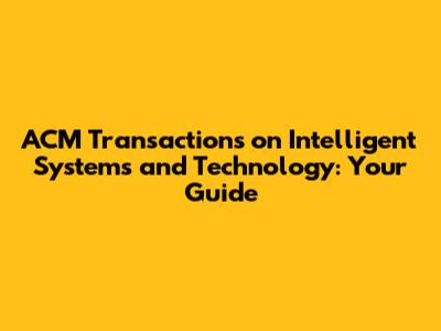 So, what sets ACM TIST apart from other journals and publications? There are several key characteristics that distinguish it and make it a leading source of information in the field of intelligent systems and technology.