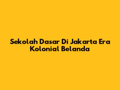 Sekolah Dasar Di Jakarta Era Kolonial Belanda