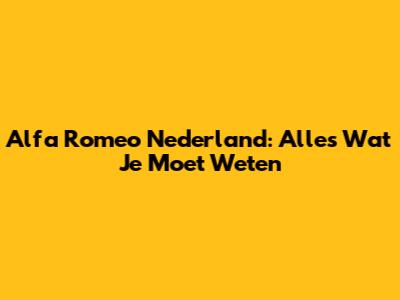 Alfa Romeo Nederland: Alles Wat Je Moet Weten
