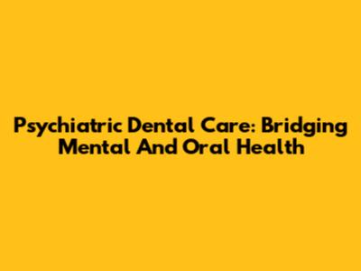 Psychiatric Dental Care: Bridging Mental And Oral Health