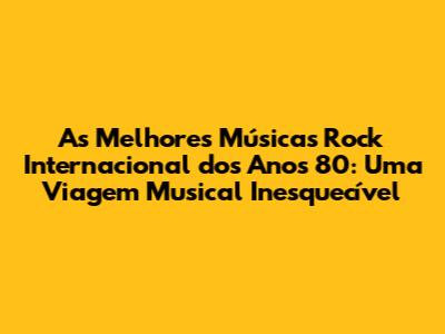 As melhores músicas rock internacional dos anos 80 continuam a nos emocionar, inspirar e conectar. Elas são um lembrete de uma época de criatividade, rebeldia e paixão pela música. Ao revisitar essas canções, nos conectamos com o passado e celebramos a atemporalidade do rock. Que a música dos anos 80 continue a ecoar por muitos e muitos anos, inspirando novas gerações e mantendo viva a chama do rock'n'roll. Reviver a magia dos anos 80 através da música é uma experiência única e emocionante. Que este artigo sirva como um ponto de partida para que você explore ainda mais esse universo musical incrível e descubra novas bandas e músicas que farão sua cabeça. Viva o rock! E que a música continue a nos unir e nos emocionar, sempre.