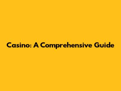 Casino: A Comprehensive Guide