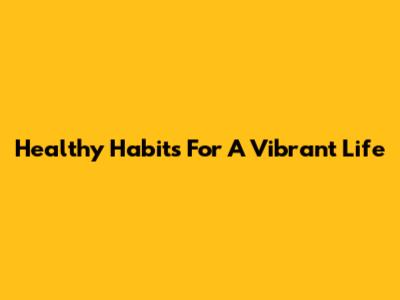 Healthy Habits For A Vibrant Life