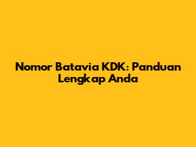 Nomor Batavia KDK: Panduan Lengkap Anda