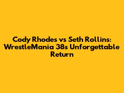 Hey guys, let's dive deep into one of the most electrifying and unexpected moments in recent wrestling history: the epic showdown between Cody Rhodes and Seth Rollins at WrestleMania 38. This wasn't just another match on the card; it was a seismic event that sent shockwaves through the entire professional wrestling landscape, marking a monumental return that nobody truly saw coming. We're talking about a moment that transcended wrestling, becoming a global talking point and solidifying its place in the annals of WrestleMania lore. For those of us who followed the drama leading up to it, the anticipation was absolutely palpable, and the payoff? Well, it was nothing short of spectacular. This match wasn't just about two incredible athletes clashing; it was about narrative, redemption, and the very unpredictable nature of sports entertainment. The buzz around Cody Rhodes' return had been building for weeks, but the sheer impact of his entrance and the subsequent match against Seth Rollins exceeded even the wildest fan theories. It was a testament to the power of a well-executed surprise and the enduring connection between a performer and their audience. From the moment the familiar 'Kingdom' music hit, everyone knew they were witnessing something truly special, a WrestleMania 38 highlight that would be replayed and talked about for years to come. This wasn't just a match; it was a statement, a new chapter, and an absolutely unforgettable spectacle that reminded us all why we love this crazy business so much. The energy in the arena, the reaction from the fans watching at home, and the sheer quality of the in-ring action all combined to create an atmosphere that was truly once-in-a-lifetime. It showcased perfectly how a strategic comeback can ignite an entire promotion and reignite a superstar's career in the most spectacular fashion imaginable.