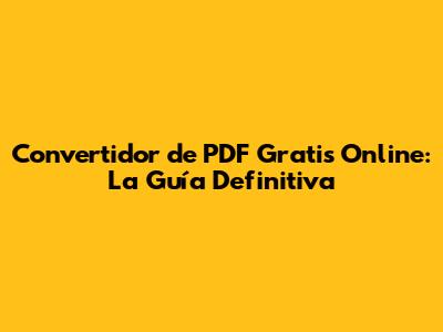 Convertidor De PDF Gratis Online: La Guía Definitiva