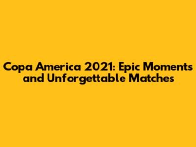 Copa America 2021: Epic Moments And Unforgettable Matches