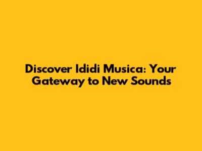Discover Ididi Musica: Your Gateway To New Sounds