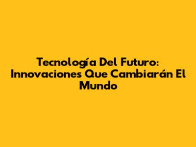 Tecnología Del Futuro: Innovaciones Que Cambiarán El Mundo