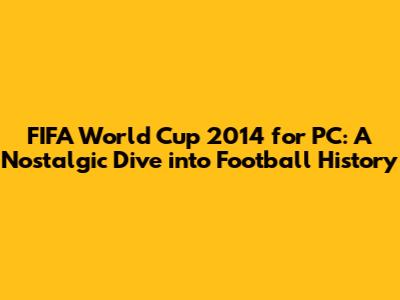 Hey football fanatics! Remember the electrifying atmosphere of the FIFA World Cup 2014 held in Brazil? The goals, the drama, the unforgettable moments – it was a tournament for the ages! If you're anything like me, you probably spent hours glued to the screen, cheering on your favorite team. And if you're a PC gamer, you might be wondering, "Can I still download and play the FIFA World Cup 2014 game on my PC?" Well, you've come to the right place! Let's dive into how you can relive the magic and experience the excitement of the 2014 World Cup all over again. I will show you how to download, install, and play the game on your PC. Let's get started, guys!
