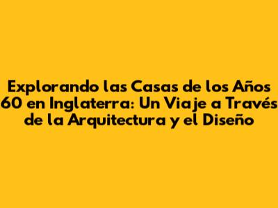 Las casas de los años 60 en Inglaterra son mucho más que simples estructuras; son un reflejo de una época, de una sociedad en transformación y de la búsqueda de un futuro mejor. Nos muestran la importancia de la innovación, el diseño funcional y la creatividad en la construcción de nuestros hogares. Espero que este viaje por la arquitectura de los años 60 los haya inspirado y les haya dado una nueva perspectiva sobre la historia del diseño. ¡Hasta la próxima, amantes de la arquitectura! Recuerden, estas casas son un tesoro que debemos valorar y proteger.