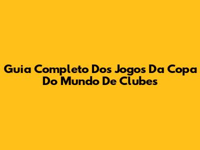 Guia Completo Dos Jogos Da Copa Do Mundo De Clubes