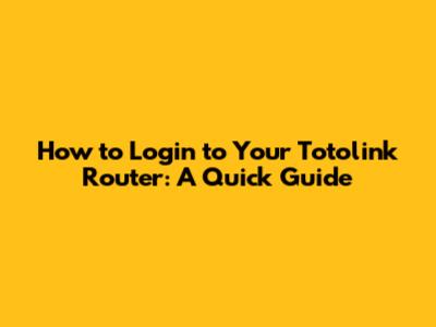 How To Login To Your Totolink Router: A Quick Guide