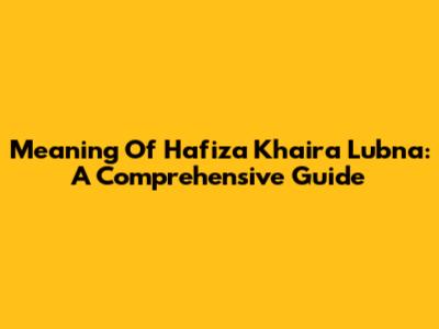 Meaning Of Hafiza Khaira Lubna: A Comprehensive Guide