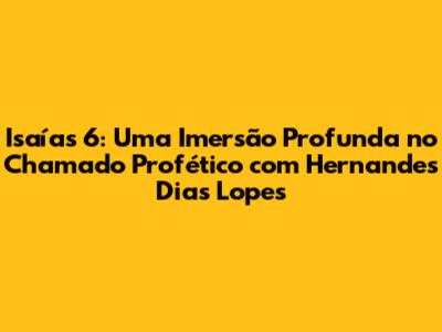 Isaías 6 é um dos capítulos mais impactantes do livro profético de Isaías. Ele narra a visão extraordinária que o profeta teve da glória de Deus, um encontro que mudou para sempre sua vida e ministério. Ao estudarmos este capítulo com a ajuda de Hernandes Dias Lopes, somos convidados a uma jornada de autodescoberta e renovação espiritual. Vamos mergulhar nas profundezas deste texto bíblico, desvendando seus mistérios e aprendendo lições valiosas para nossa vida.