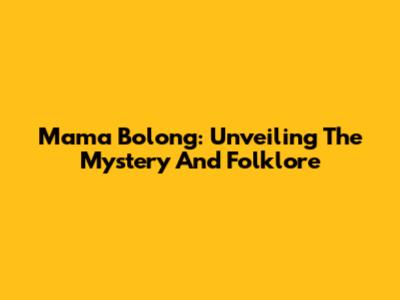 Mama Bolong: Unveiling The Mystery And Folklore