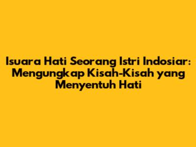 Isuara Hati Seorang Istri Indosiar adalah program televisi yang sangat berharga bagi masyarakat Indonesia. Program ini tidak hanya menghibur, tetapi juga memberikan edukasi, inspirasi, dan motivasi bagi para penonton. Melalui kisah-kisah yang menyentuh hati, program ini berhasil membuka mata masyarakat terhadap berbagai masalah yang dihadapi oleh para istri, meningkatkan kesadaran tentang pentingnya menjaga keutuhan rumah tangga, dan memberikan inspirasi bagi para penonton untuk terus berjuang dan tidak menyerah dalam menghadapi masalah. Kalian pasti setuju, kan, kalau program ini memang luar biasa?