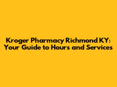 By staying informed and proactive, you can ensure that you have access to the medications and healthcare services you need, when you need them. Kroger Pharmacy in Richmond, KY, is a valuable resource for the community, providing a wide range of services and support. Whether you're picking up a prescription, getting a flu shot, or seeking advice from a pharmacist, they are there to help. By following the tips and information provided in this guide, you can make the most of your pharmacy visits and stay on top of your health.