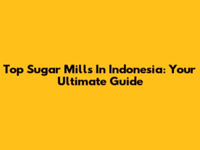 Top Sugar Mills In Indonesia: Your Ultimate Guide