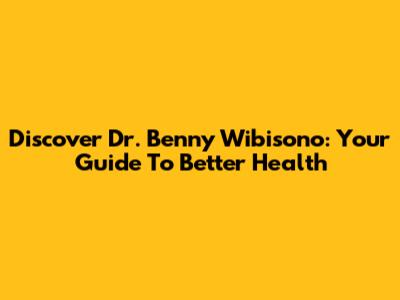 Discover Dr. Benny Wibisono: Your Guide To Better Health