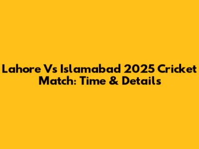 Lahore Vs Islamabad 2025 Cricket Match: Time & Details