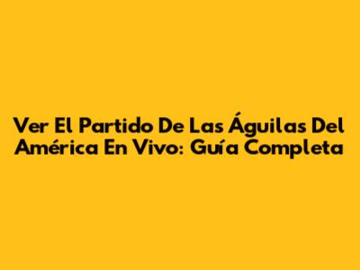 Ver El Partido De Las Águilas Del América En Vivo: Guía Completa
