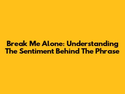 Break Me Alone: Understanding The Sentiment Behind The Phrase
