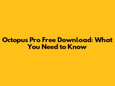 Octopus Pro Free Download: What You Need To Know