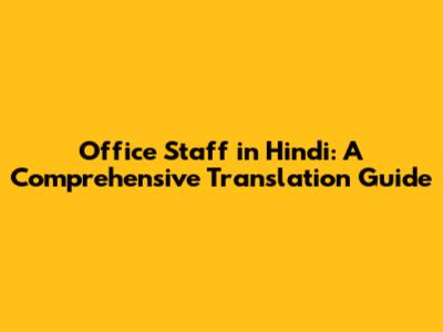 Office Staff In Hindi: A Comprehensive Translation Guide