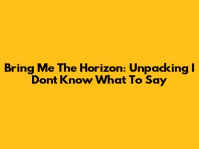 Bring Me The Horizon: Unpacking "I Don't Know What To Say"