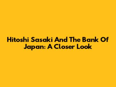 Hitoshi Sasaki And The Bank Of Japan: A Closer Look