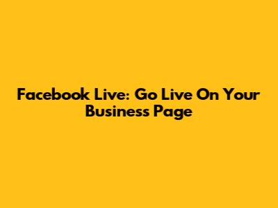 Facebook Live: Go Live On Your Business Page