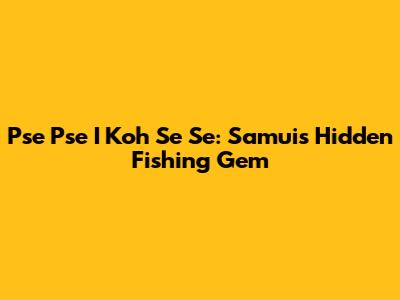 Pse Pse I Koh Se Se: Samui's Hidden Fishing Gem
