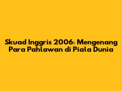 • Kenangan: Meskipun gagal meraih trofi, skuad Inggris 2006 tetap dikenang sebagai tim yang memiliki semangat juang tinggi dan memberikan hiburan bagi para penggemar.