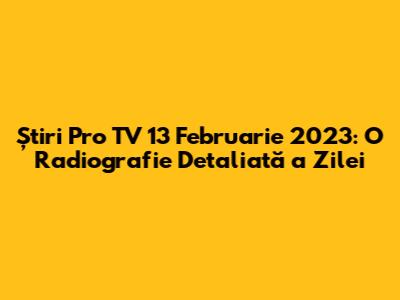 În plus, Pro TV a abordat evenimente culturale și sociale importante, cum ar fi lansări de filme, concerte, expoziții și evenimente sportive. Aceste reportaje au oferit o perspectivă asupra vieții culturale și de divertisment, precum și asupra problemelor sociale cu care se confruntă societatea. Prin reportajele sale, Pro TV a încercat să ofere o imagine completă a evenimentelor din 13 februarie 2023, abordând subiecte variate și relevante pentru publicul său. Scopul a fost de a informa, de a educa și de a contribui la o mai bună înțelegere a realității.
