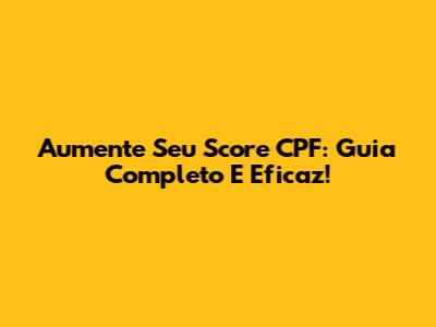 Aumente Seu Score CPF: Guia Completo E Eficaz!