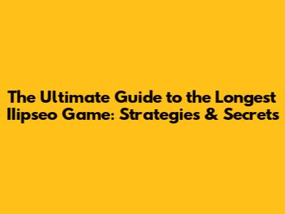The Ultimate Guide To The Longest IIipseo Game: Strategies & Secrets