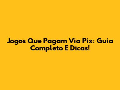 Jogos Que Pagam Via Pix: Guia Completo E Dicas!