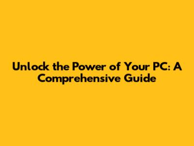 Unlock The Power Of Your PC: A Comprehensive Guide