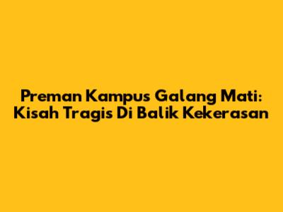 Preman Kampus Galang Mati: Kisah Tragis Di Balik Kekerasan